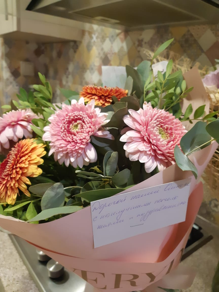Идеальный выбор для доставки! Как обычно заказывала букет на доставку в день мероприятия, другие компании день в день по времени не готовы везти как нужно мне, а тут время подобрали, с выбором цветов помогли, подсказали по декору, со мной были на связи по любому вопросу, для меня это очень важно, так как заказывал из Иркутска. Курьер вошел в положение и подождал маму возле подъезда, чтобы передать букет! Цветы красивые, сервис удобный, персонал отзывчивый и ориентирован на клиента. Благодарю Вас за вашу работу!
