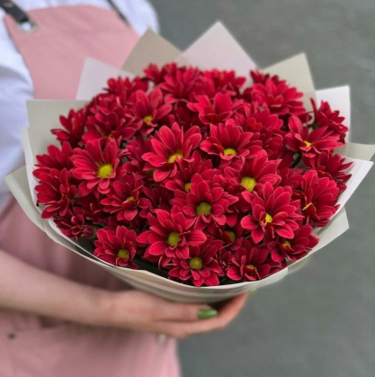 Букет из 9 бордовых кустовых хризантем | Купить в Мытищах