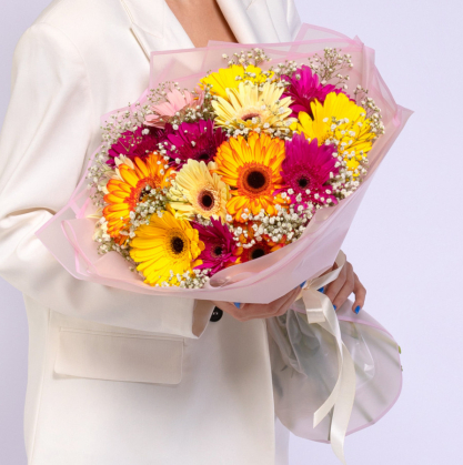 Букет из герберы и гипсофилы | Купить в Мытищах